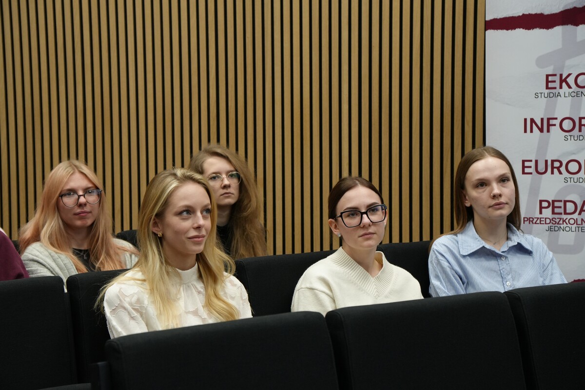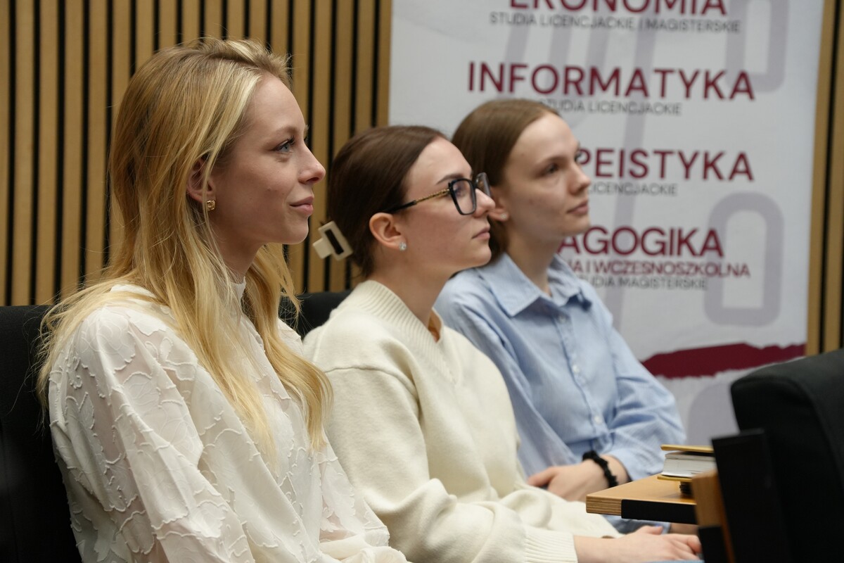 W spotkaniu wzięły również udział byłe uczestniczki programu Erasmus+, które podzieliły się swoimi doświadczeniami z wyjazdu zagranicznego i opowiedziały o korzyściach płynących z udziału w programie. Dzięki temu studenci mieli okazję poznać praktyczny wymiar mobilności akademickiej i zadać pytania dotyczące wyjazdów.