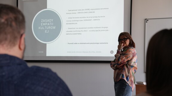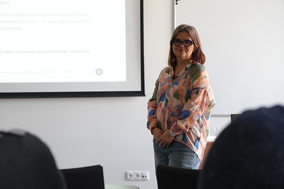 Szkolenie przeprowadziła dr Beata Karpińska-Musiał, prof. UG – anglistka i pedagożka, pracowniczka naukowo-dydaktyczna Uniwersytetu Gdańskiego od 2004 roku. Prowadzi zajęcia z zakresu językoznawstwa, glottodydaktyki, pedagogiki międzykulturowej, a także autorskie wykłady dotyczące transformacji uniwersytetu oraz zajęcia fakultatywne na specjalnościach nauczycielskich.