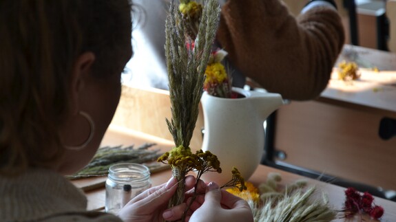 Spotkanie poprowadziły doświadczone palmiarki z podwileńskich Wajwodziszek – Stanisława Rynkiewicz oraz jej córki, Alina i Renata. To wyjątkowe postacie, które od ponad pięciu pokoleń z ogromnym zaangażowaniem kultywują i propagują sztukę wicia palm wileńskich. Podczas warsztatów podzieliły się swoją wiedzą, opowiedziały o rodzinnej historii, technikach wykonywania palm oraz bogatej symbolice związanej z tym zwyczajem.