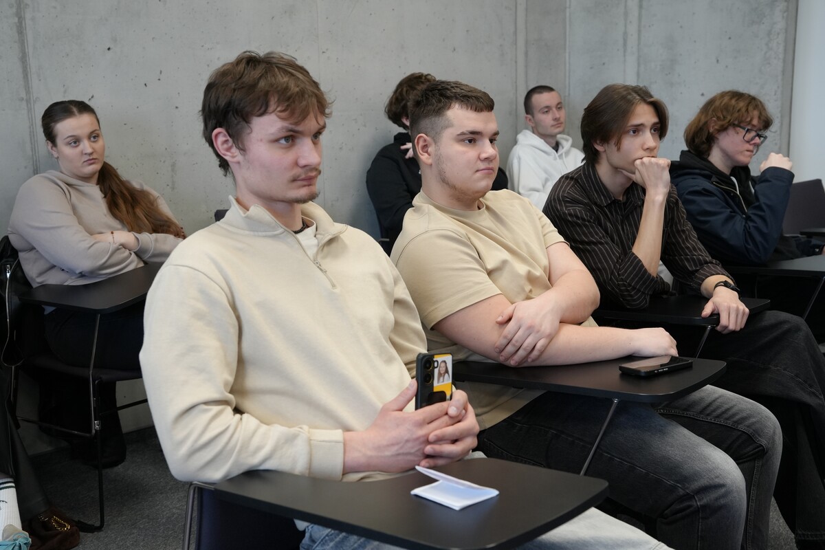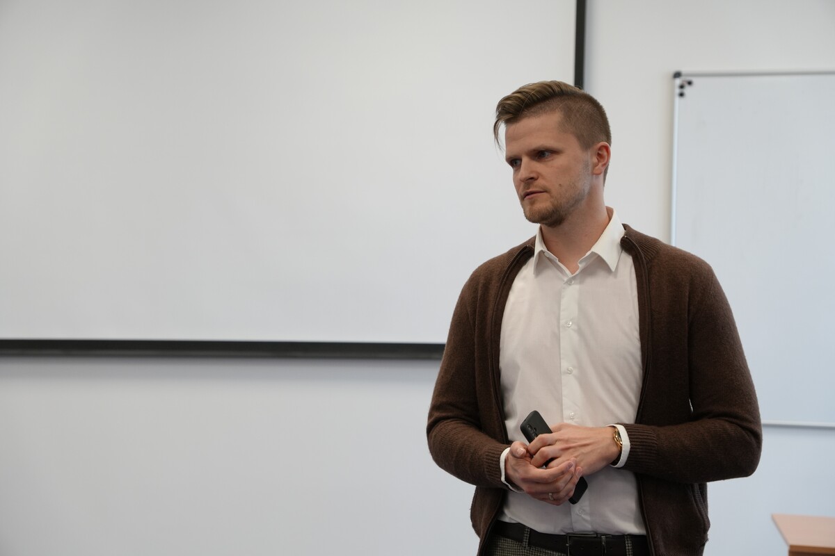Podczas spotkania Tadeusz Bejnarowicz opowiedział o swoim doświadczeniu zawodowym – od studiów po dzień dzisiejszy. Podzielił się swoją drogą kariery, omawiając sukcesy, wyzwania i znaczenie podejmowania ryzyka w rozwoju zawodowym. Motywował studentów do działania, próbowania nowych rzeczy i realizowania projektów krok po kroku, zaczynając od drobnych zadań, a kończąc na bardziej wartościowych przedsięwzięciach. Poruszył również rolę mikro- i makrootoczenia w biznesie oraz świadomego zarządzania codziennymi i strategicznymi decyzjami.