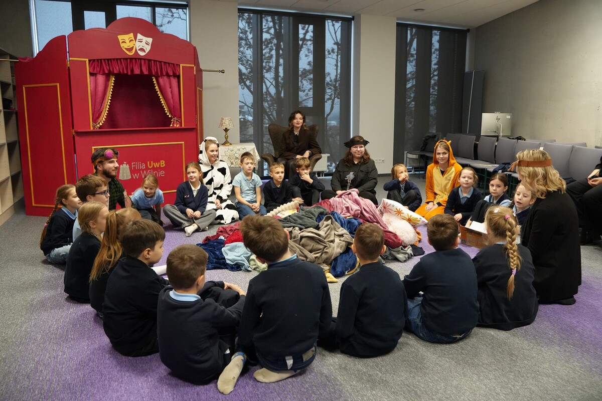 27 listopada w czytelni Filii UwB w Wilnie odbyło się drugie „Spotkanie z książką”, zainicjowane przez Sekcję Literacką Koła Naukowego Studentów Pedagogiki im. Janusza Korczaka. W wydarzeniu uczestniczyły dzieci z Liceum Adama Mickiewicza w Wilnie, które mogły przeżyć tę literacką przygodę, odkrywając, jak opowieść potrafi ożyć dzięki wyobraźni i wspólnej zabawie.