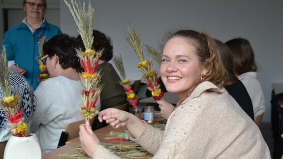 On April 9, a Palm Weaving Workshop took place at the Branch of the University of Bialystok in Vilnius. The event aimed to familiarize participants with the rich and vibrant tradition of crafting Easter palms—an essential part of the culture and heritage of the Vilnius region. Attendees had the chance not only to learn practical skills but also to create their own handmade palms.